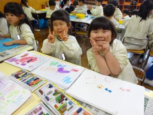 ゆり組さんは、お部屋でお絵描きをしました。