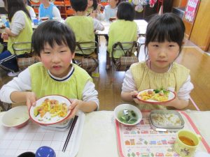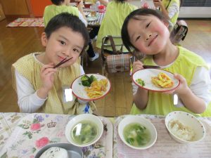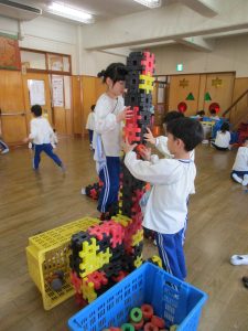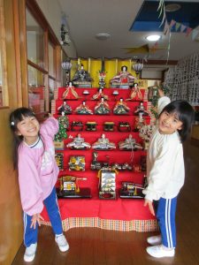 2023.02.09 日々の様子 2月9日(木)☁ 今日は2月9日、肉の日ですね🍖 ひな祭りの日まで1カ月を切り、保育園の玄関には、ひな人形が登場しました❗ 7段のひな人形が飾られました。 「いろんなお顔をしているんだね~」と喜んで見ている子ども達です😆 朝のホールでの自由遊びには、ブロックでタワーを作っていました🗼 お友達と協力して、支え合いながら立派なタワーを完成させました。 今日の給食は、子ども達から大人気の“ウインナーとさつまいものフリッター”でした🍠 「毎日食べた~い!」と大喜び😄 みんな笑顔で食べていました。