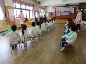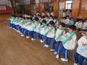 “チューリップ”“メリーさんのひつじ”を2曲のグループに分かれて合奏をします。