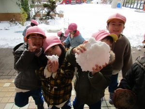 さくら組さんは合奏の練習の後に、雪遊びをしました。