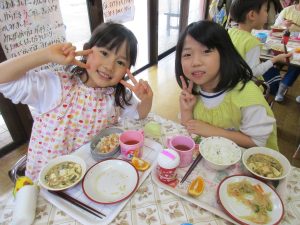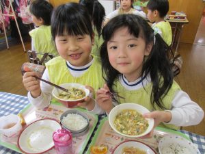 「暖かくておいしいね」「お豆腐たっぷり~🎵」と美味しそうに食べていました😋