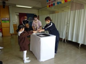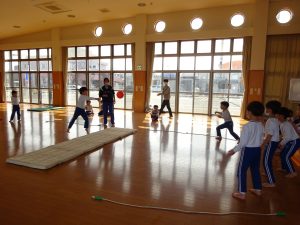 午前中に以上児のお友達は、ひまわりホールでHACを行いました。