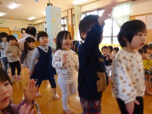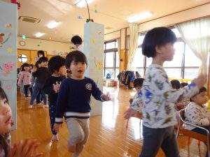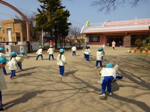 ゆり組さんは、園庭で‟だるまさんが転んだ”を楽しんでいました。