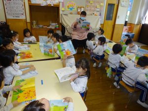 先生が読んだところを指で追いながら、みんなで元気よく声に出して読みました📚