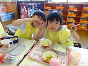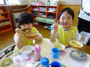 2023.03.17 日々の様子 3月17日(金)🌞 今日は、卒園式リハーサルを行いました。 卒園式まで、残り10日となりました。 あっという間ですね😲 リハーサルを頑張った後は、楽しい楽しい給食の時間です😋 今日は、「食育の日」でした。 献立は、魚の香草焼き・キャベツのおかか和え・冬菜のみそ汁でした。 「今日は、僕たちを撮ってね!」と、毎日のブログを楽しみにしているお友達もいます。 みんな美味しそうに、とても良い笑顔で味わっていました😊 今週もありがとうございました。 来週もよろしくお願いいたします❗