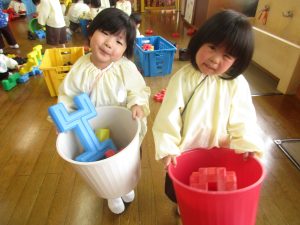 3歳児さくら組さんは、4月から以上児園舎での生活が始まりました。