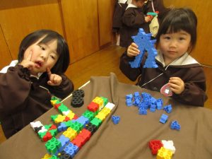 2023.04.06 日々の様子 4月6日(木)☁ 今日は、延長保育の様子をお伝えします。 ホールでは、ゆり組さん、ひまわり組さんが色鬼をしていました😈 「鬼さん、鬼さん、何色ですか~?」の掛け声で、鬼さんが言った色の物の所へダッシュです💨 なかなか見つけられない色もあり、沢山探していました。 さくら組さんは、お部屋でブロック遊びをしました。 手先を器用に使い、小さなブロックも上手に組み立てることができました👍 「〇〇作ろうよ!」と、お友達と沢山の形を作っていました😁