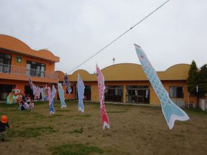 先日から未満児園舎園庭には、こいのぼりが泳いでいます🎏