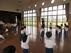ひまわり組さんは、ひまわりホールの園庭で遊びました。