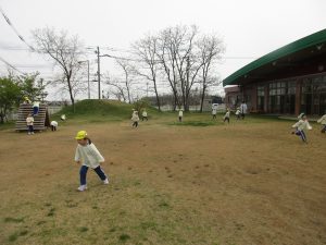 上着を着て園庭へ行きました。