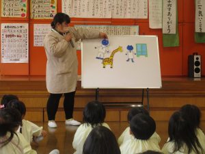 今日のお集りの時には、「ねこのお医者さん」のパネルシアターを見ました😺