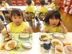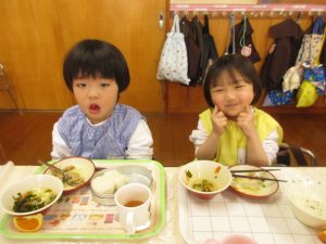2023.04.24 日々の様子 4月24日(月)🌞 早いもので4月の最終週が始まりました。 あっという間に1カ月が終了しようとしています。 今日の給食は、プルコギ・わかめスープ・果物でした🍊 毎日ペープサートを使用して、献立の食材を伝え、食育活動を行っています。 子ども達からも「にんじんとわかめが入ってるよ!」「あと、豆腐も!」と沢山の声が聞こえてきます。 これからも子ども達が‟食”に興味を持てるよう、楽しく食育活動をしていきます😋 今週もよろしくお願いいたします❗