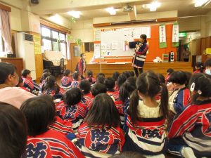 今日は、幼年消防クラブ・交通安全教室・カルタ会を行いました。