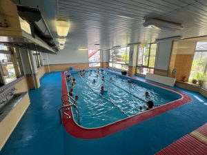 ゆり組、ひまわり組さんは、第二はじめ保育園の温水プールで水泳指導でした。