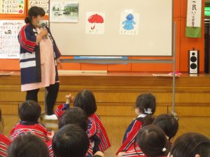 雨の日に身に着ける物(レインコートや傘)についてもクイズ形式で学びました。