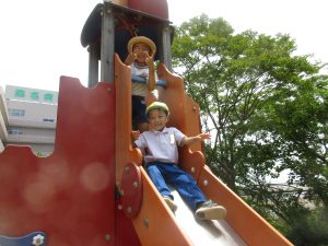 天気の良い中、園庭で沢山体を動かしました。