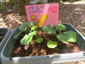 0歳児つぼみ組さんのクラスの野菜は、バターナッツかぼちゃです。