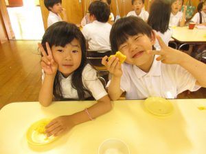 2023.06.29 日々の様子 6月29日(木)🌤 今日の日中は良いお天気になりましたね。 もう少しジメジメした気候が続きそうです。 以上児園舎園庭の新しくできた花壇には、ひまわりを植えました🌻 雨や太陽の力を借りてぐんぐん成長しています。 子ども達の成長と競争しているかのように、ひまわり達も日々大きくなっています。 今日のおやつは、手作りおやつ。人参ケーキでした🥕 「フワフワしていて美味しいね」と楽しくお話しながらいただきました😋 次はどんな手作りおやつかな❓ 楽しみですね😉