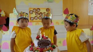 未満児9名、以上児11名のお友達のお祝いをしました。