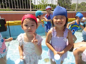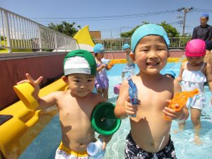 それぞれお気に入りのおもちゃがあり、水鉄砲やジョウロ、バケツなどを使って楽しんでいます🤩