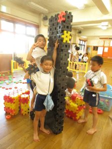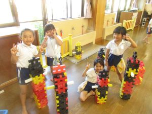 豊かな発想で、お友達と協力しながらタワーなどを作っています😁