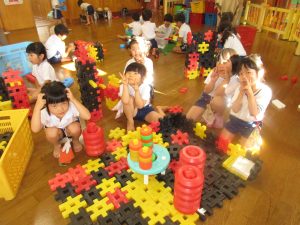 延長保育では、ホールでBブロックやモノブロック、縄跳びの練習をして、夕方でも元気いっぱいに過ごしています😃