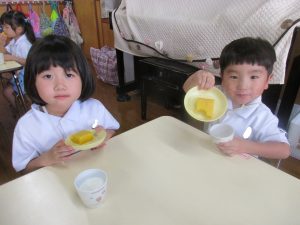 2023.08.24 日々の様子 8月24日(木)🌞 今日も天気の良すぎる1日でしたね😅 朝の自由遊びでは、ひまわり組さんがモノブロックを使い、大きなお家を作っていました🏠 自分達よりも高く積み重ね、お友達と協力して立派なお家ができていました。 今日は手作りおやつ、キャロットケーキでした🥕 「オレンジ色できれいだね」「フワフワしてる~!❣」と喜んでいただきました😋