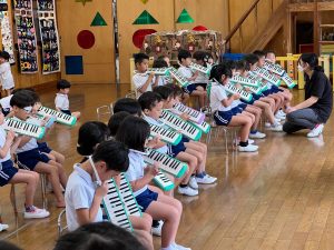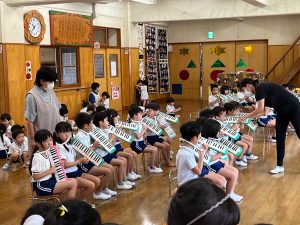 2023.09.20 日々の様子 9月20日(水)☁ 気温が下がり過ごしやすくなりましたが、雨の影響でジメジメとした1日になりました。 昨日に引き続き、以上児のお友達は音楽会の練習をしています。 メロディオンでの合奏の練習中です🎵 メロディオンの持ち方や椅子の座り方、足を揃えることも教えています。 本番まで1カ月ありますので、これからも練習していきましょうね😉 明日は久しぶりの第二はじめ保育園の温水プールでの水泳指導です。 さくら組さんは、初めての温水プールです🎉 少しずつ水に慣れるよう、練習していきましょうね💪