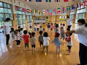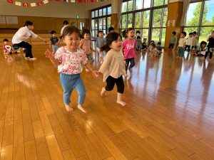 すみれ、たんぽぽ組さんのお友達は、お遊戯やかけっこをしました😄