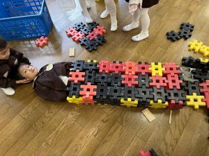 今日の朝の自由遊びでは、面白いものを作っていたお友達がいました😆