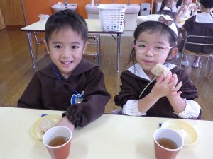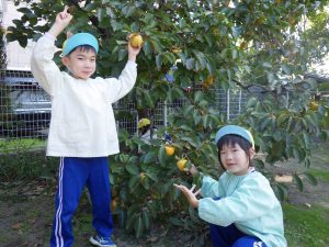 2023.10.26 日々の様子 10月26日(木)🌞 今日はお天気になりましたね。 園庭に出て、身体を動かして過ごしました。 すべり台や雲梯、砂遊びを楽しみました😁 園庭の柿の木の前でパシャリ📸 これから収穫するのが楽しみですね。 さくら組さんは、制作帳のミノムシを作っていました。 指先を器用に使い、折り紙を折っています👍 今日のおやつは、栗ご飯のおにぎりでした🌰 給食やおやつで、秋の味覚を楽しんでいる子ども達です🍂