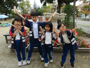 ‟戸締り用心、火の用心”の掛け声に合わせて、拍子木を鳴らしながら歩きました。