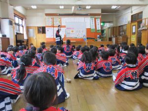 今日は、幼年消防クラブ・交通安全教室・カルタ会を行いました。