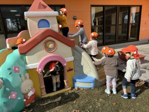 すべり台の遊具もしっかりと並んでルールを守り、順番に使っています👍