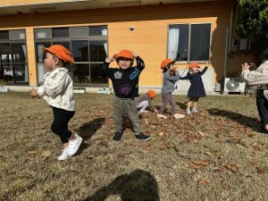 お天気の中、園庭で遊びました。落ち葉を投げて遊んだり、【秋】ならではの遊びを楽しみました🍂