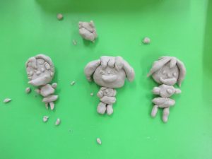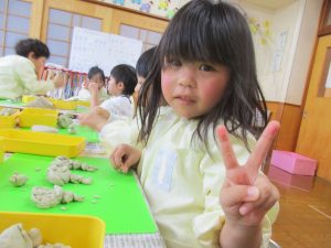 粘土遊びをしていました。手先を上手に使い、工夫して素敵なお人形を作っていました。