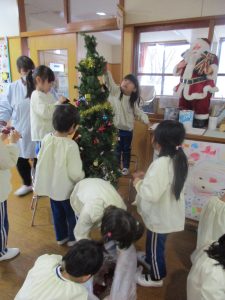 小さなサンタさんも飾り、1か月後のクリスマスが待ち遠しい様子の子ども達でした🎅