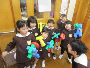 ひまわり組さんの女の子のお友達は、ブロックでお花を作り、ホールの探検をしていました🧐