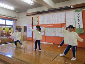 ステージでおたのしみ会のお遊戯の練習も楽しんでいます。
