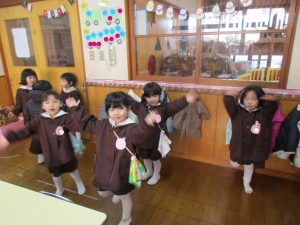 保育園では、おたのしみ会に向けて練習中です。