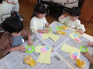 2023.12.15 日々の様子 12月15日(金)☔ 今日は雨降りの1日でしたね😢 保育園では、ABC(英語教室)を行いました。 クリスマスにちなんだ英単語を教わりました🎄 クリスマスプレゼントで欲しい物を元気よく声に出したり、カードを使ったゲームも楽しみました。 さくら組さんは、クリスマスのくつ袋やリースを制作しています🤩 「サンタさん、見てくれるかな?」とワクワクしながら作っています。 クリスマスが待ち遠しいですね🎵 今週も1週間、ありがとうございました。 来週もよろしくお願いいたします❗