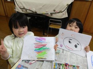2023.12.20 日々の様子 12月20日(水)☔ 今日は、不審者訓練を行いました。 実際に不審者に扮した職員が玄関から侵入したので、緊張感を持って訓練を行うことができました。 “いかのおすし″のお約束も覚えているお友達が沢山でした👍 日中は、各クラスくつ袋やお面の制作をして、クリスマスの雰囲気を楽しんでいます。 さくら組さんは、お絵描きで「この前、見た虹だよ!」「お団子にお顔描いたよ!」と様々な物を描いていました🌈 明日から寒波の予報がされています。 送迎時、外出時は事故等にお気を付けください。