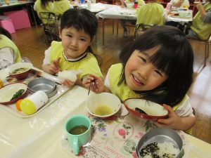 2024.01.10 日々の様子 1月10日(水)🌨 最近は天候の良くない日が続いていますね。 今日の給食は、お魚の日でした🐟 献立は、魚の塩麹漬け焼き・ほうれん草の胡麻和え・みそ汁・果物でした。 魚も子ども達が良く食べるメニューの1つで、「わーい!お魚だ!」と喜んでいました🤗 他のメニューにも興味を持ち、「ごまの味がするね」「豆腐柔らかいね」などと食感や味の感想をお友達とお話ししていました。 やはり保育園の給食は、大好きなお友達と一緒に食べることができて一段と美味しく感じますね😋 今後の給食の時間も楽しい時間を過ごしましょうね🎵