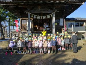 2024.01.17 日々の様子 1月17日(水)⛅ 今朝は路面が凍り、運転や歩くこともドキドキの朝でしたね😬 今日の朝のお集りでは、園長先生が旬の冬野菜の大根をみんなに見せてくださいました🤩 とても大きく立派でおいしそうな大根でした。 市場には出回らない品種で、とても珍しい大根だそうです。 お昼の給食後は、ひまわり組さんが大形神社へ参拝に行ってきました。 「大きな地震が起きませんように」「皆が仲良くできますように」等、1人1人がお祈りしました🙏 ご家庭でも初詣で参拝に行かれたことと思いますが、お友達と一緒に行くのも楽しかったですね😆