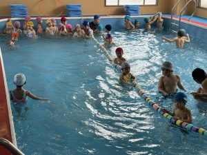 以上児のお友達は、水泳指導で第二はじめ保育園の温水プールへ🚌