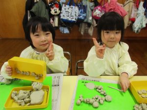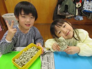 水泳指導の後、さくら組さんは粘土遊びをしました。