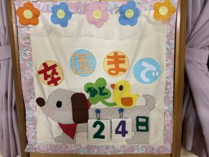 ホールに3/25の卒園式までの日・祝日を除いた残り日数を掲示しています。