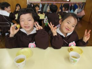 2024.02.27 日々の様子 2月27日(火)☔ 今日は、未満児のひな祭りの集いを行いました🎎 ひな祭りの由来やひな人形の名前のお話がありました。 たんぽぽ組さんは、「花舞い」の曲に合わせて踊りを披露しました。 ひな祭りにピッタリで可愛かったです🥰 今日のおやつは、フライドポテトでした🍟 じゃがいもは黄色の食材なので、午後からの活動のエネルギー源になりますね💪 みんなで美味しくいただきました。