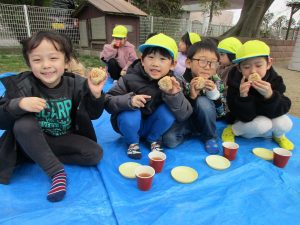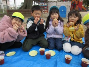 天気も良く、みんなでピクニック気分を味わいながら、楽しいおやつの時間を過ごしました。