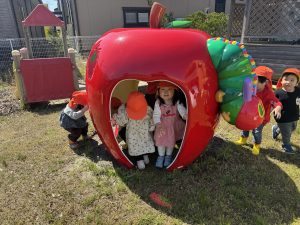 2024.04.10 日々の様子 4月10日(水)🌞 日中は良いお天気となりましたね。 たんぽぽ組さんは、園庭で遊びました。 未満児園舎には新しい遊具がやってきました✨ はらぺこあおむしの可愛い遊具です🐛 遊具が来てから遊びたそうに窓から眺めて楽しみにしていました。 ひまわり組さんも、園庭で遊びました😁 園庭には、気持ちよさそうに鯉のぼりも泳いでいます🎏 園舎へ戻る時は、よーいどん❗でみんなで走りました。